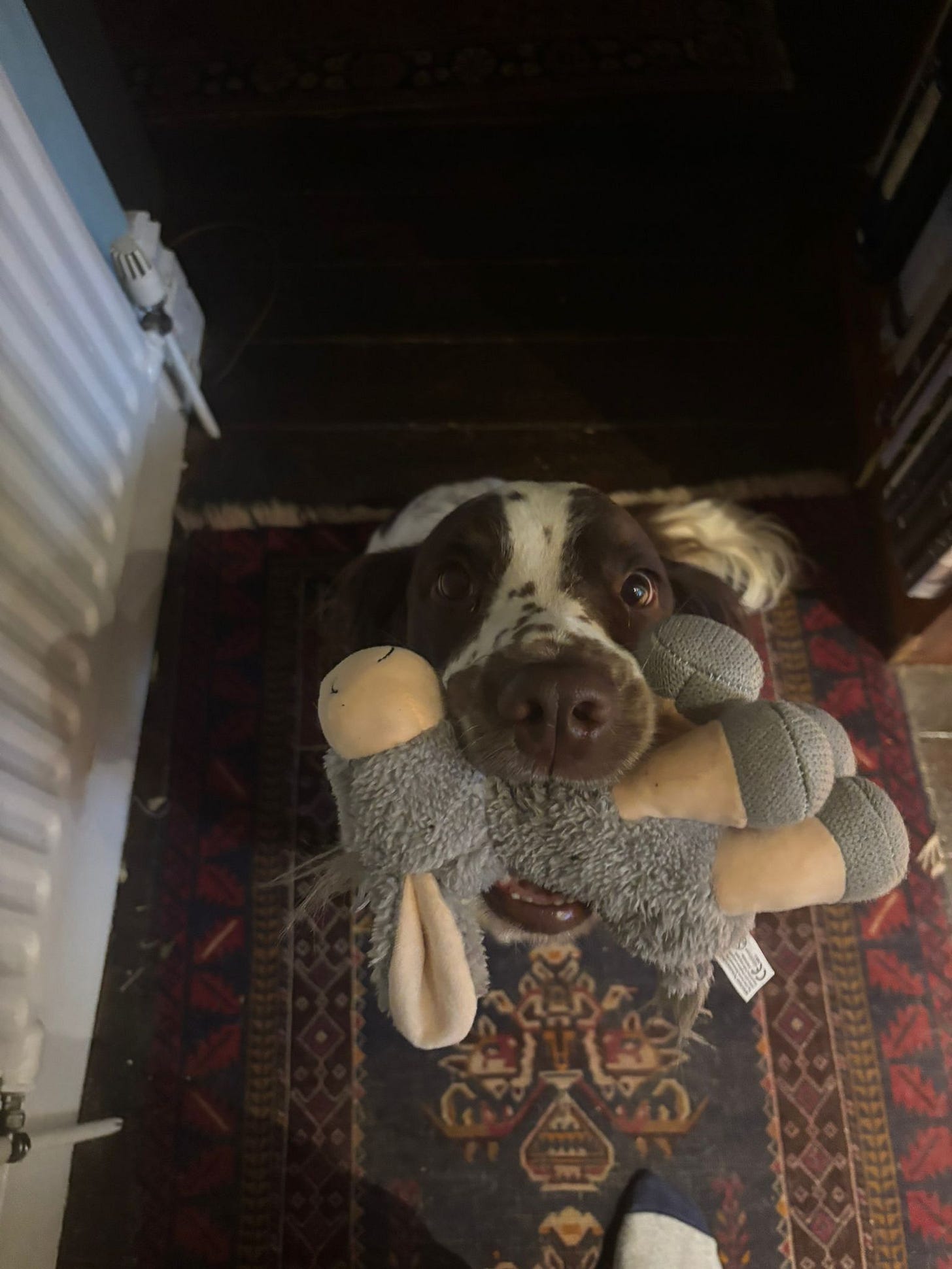 My daughter visited at the weekend as it was a bank holiday last Monday in Ireland. She brought Paddy a toy from Dublin airport. Paddy was delighted. He now has quite the collection of toys from Dublin airport. The toys have embroidered eyes and thus are suitable for dogs.